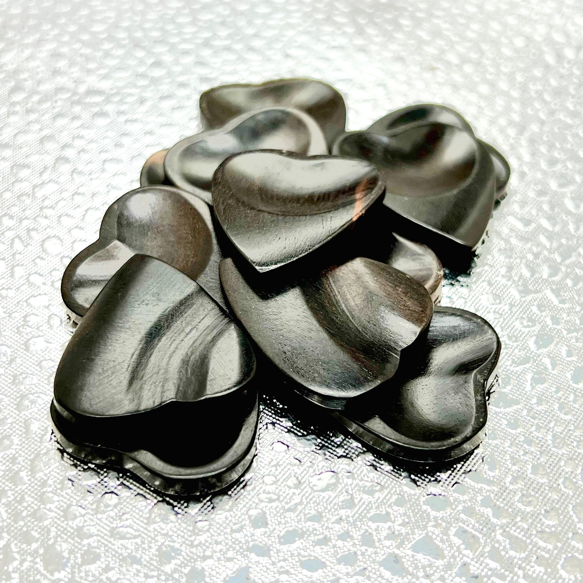 Sculpted Black Horn Heart Guitar Picks by US Blues®. Artist-grade tone, comfort grip, and stunning design. 3-pack of premium handcrafted picks.