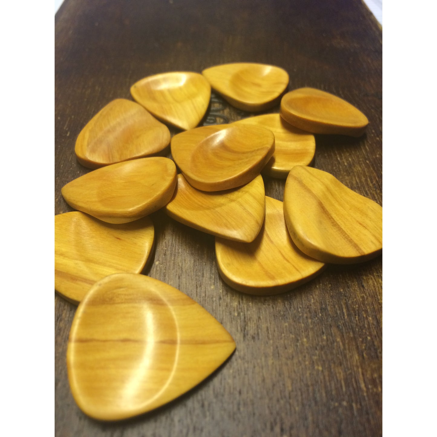 Sculpted maple heart guitar picks with thumb and finger grooves. Get 3 artisan-crafted picks with rich tone and great grip. US Blues® quality.