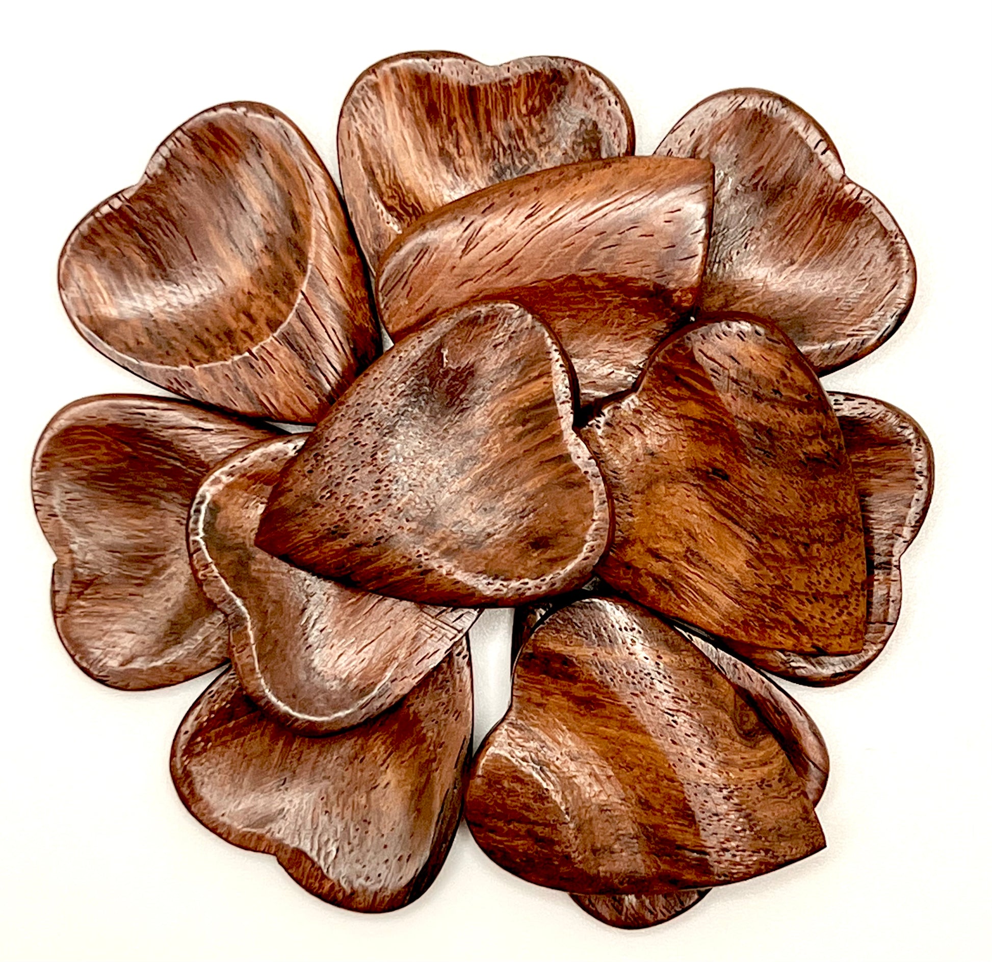 Artist-quality rosewood heart guitar picks with sculpted grip. Perfect for acoustic or electric tone. Rosewood heart guitar picks in 3-pack.