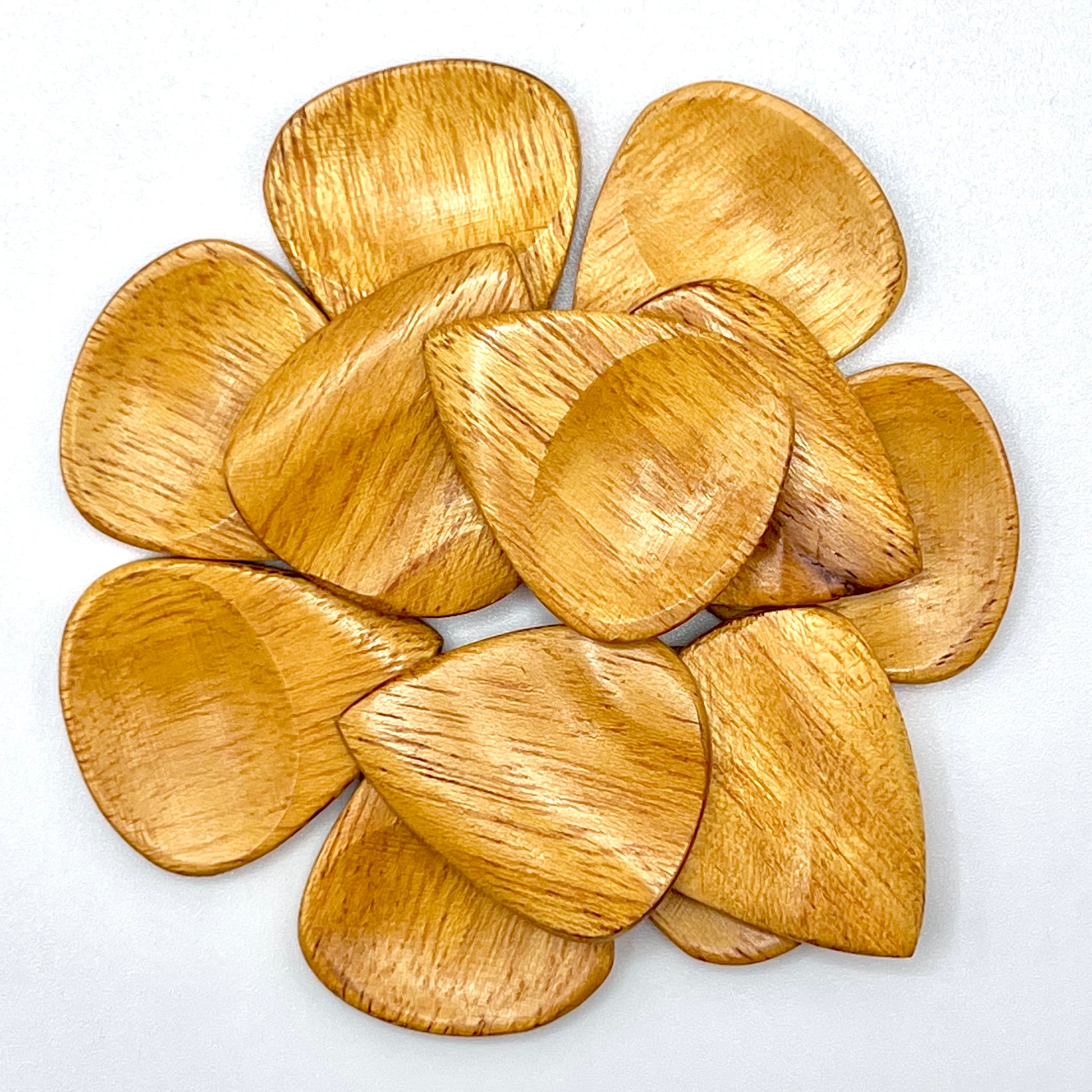 Shop Lemonwood Guitar Picks by US Blues® – sculpted for comfort, tone, and control. Perfect for acoustic guitars. Sustainably handcrafted.