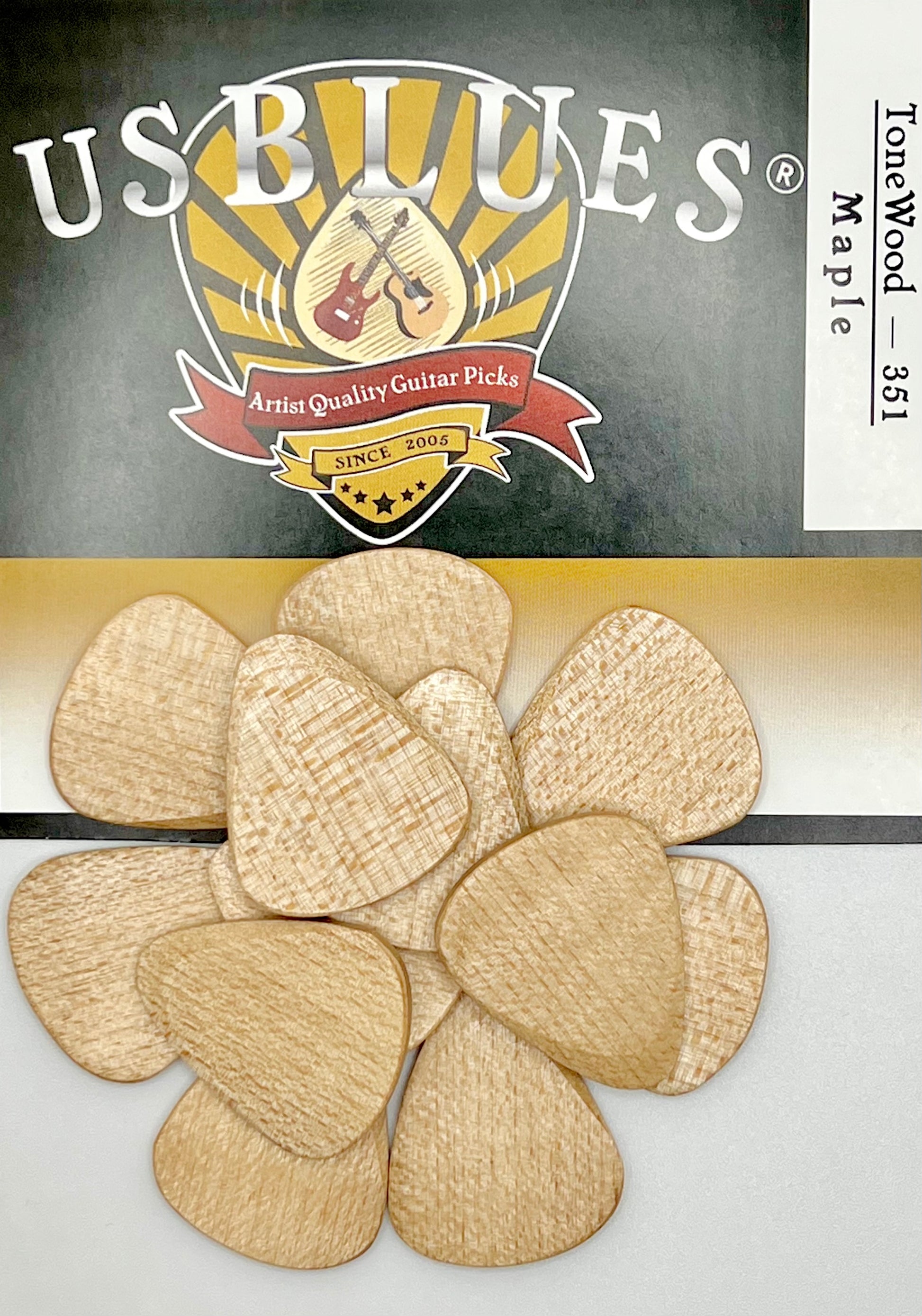 US Blues® maple wood guitar picks deliver warm, balanced tone. Crafted for precision and feel—ideal for acoustic & electric players.